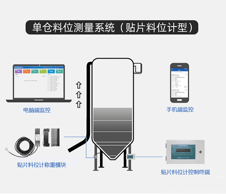 实时监测粉料仓余量,代替人工敲锤,避免工人不敲和人身安全事故。